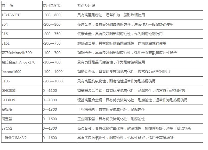 耐腐熱電偶保護(hù)管材質(zhì)及選用