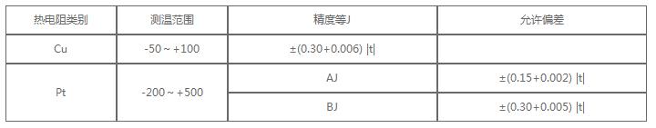 注:表中t為被測(cè)溫度的J對(duì)值,℃。⑵.熱電偶注:t為實(shí)際溫度,允許可用溫度度數(shù)表示,也可用實(shí)際溫度的百分?jǐn)?shù)表示,取其大者。2.常溫J緣電阻?、?熱電阻 熱電阻在環(huán)境溫度為15~35℃,相對(duì)濕度不大