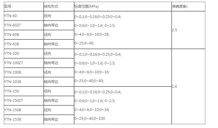 耐震壓力表型號、結構形式、標度范圍、準確度等J